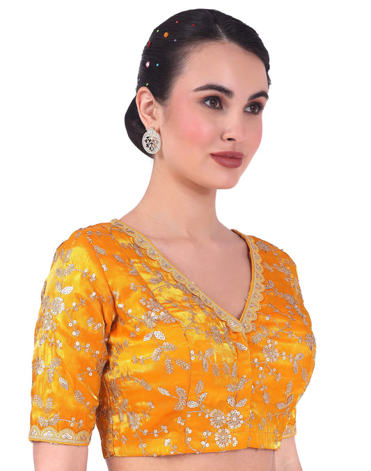 Studio Shringaar Women's Yellow Organza Embroidered Saree Blouse (Design 2836)