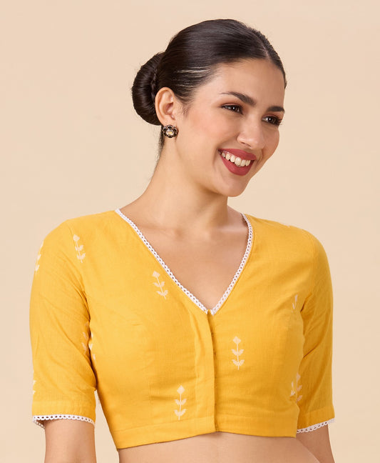 Studio Shringaar Women's Yellow Cotton Handloom Stretchable (Smocked) Readymade Saree Blouse (Design 2865)