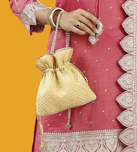 Studio Shringaar Women’s Golden Brocade Potli Purse Batwa in Gift Box | Perfect Gift for Mother, Wife & Sister