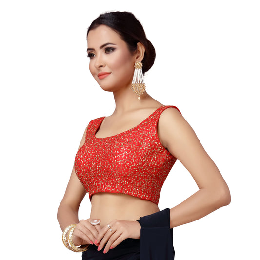Women's Embroidered Stitched Sleeveless Saree Blouse (2152 - Red)