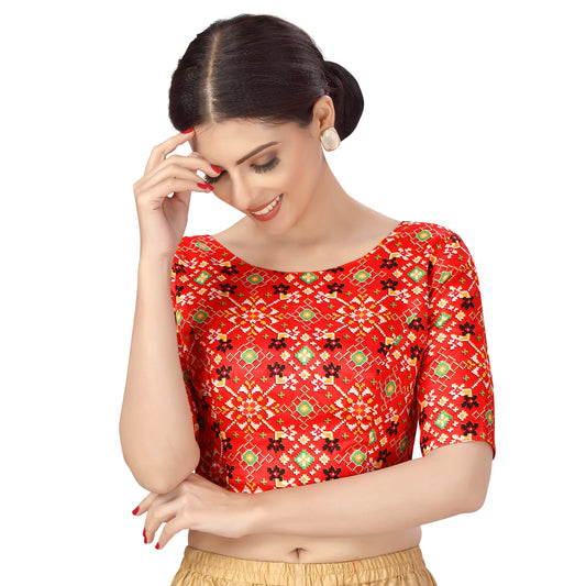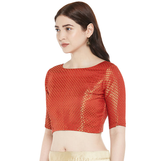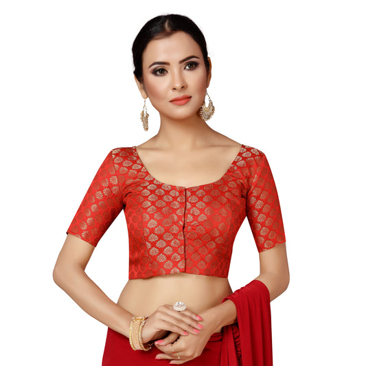 Women's Red Polyester Benaras Brocade Blouse (Design 1966)