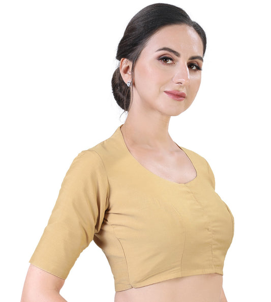 Women's Polyester Solid Short Sleeve Saree Blouse (2341 - Gold)