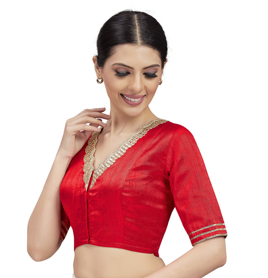 Women's Red Faux Silk and Cotton Blouse (Design 2074)