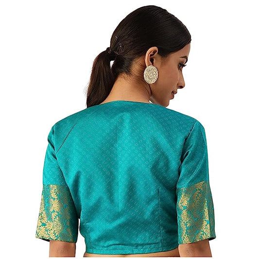 Women's Readymade Wave Design Banaras Brocade Saree Blouse With Elbow Length Sleeves (2628)