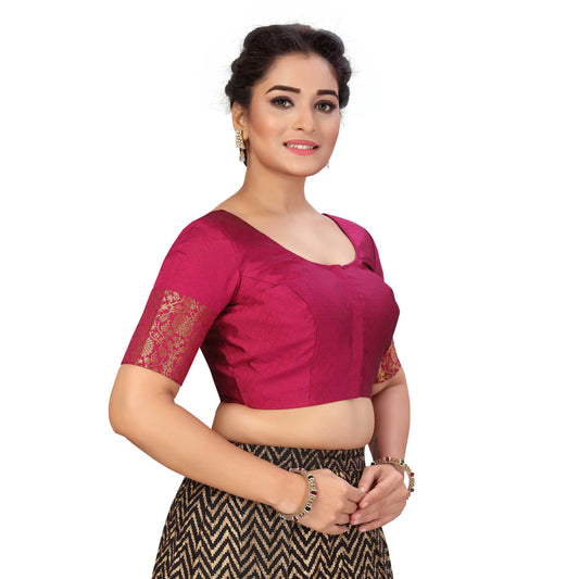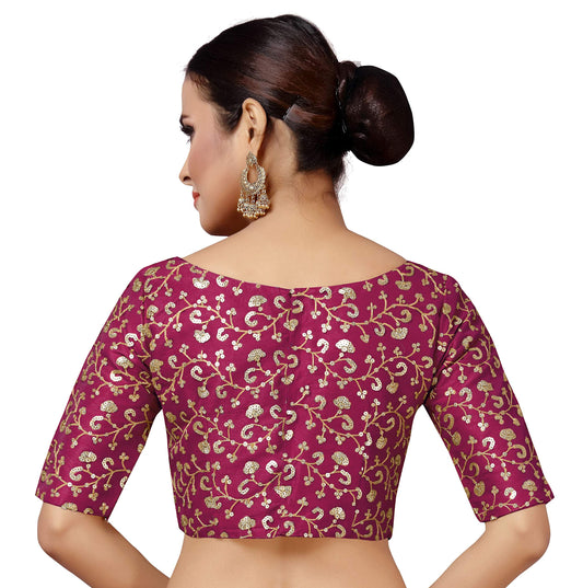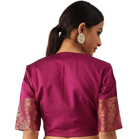 Women's Wine Brocade Polyester Blouse with Golden Kanjivaram Border (Design 2333)