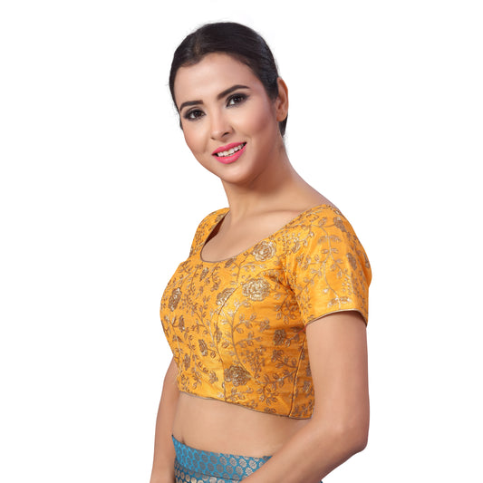 Women's Yellow Benaras Brocade Blouse (Design 2666)