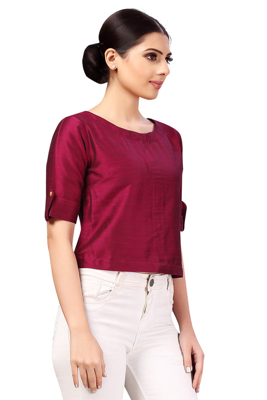 Women's Wine Silk Brocade Polyester Blouse (Design 2574)