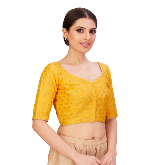 Women's Yellow Benaras Brocade Cotton Blouse (Design 2576)