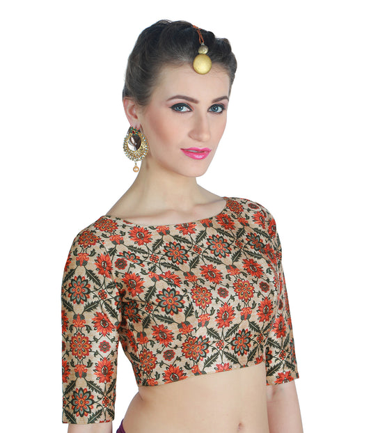 Women's Digital Printed Multi-Colour Saree Blouse with Boat Neck (1950 - Multi Colour)