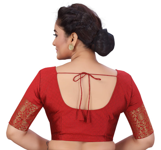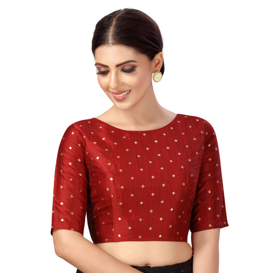 Women's Maroon Brocade Polyester Blouse (Design 2384)