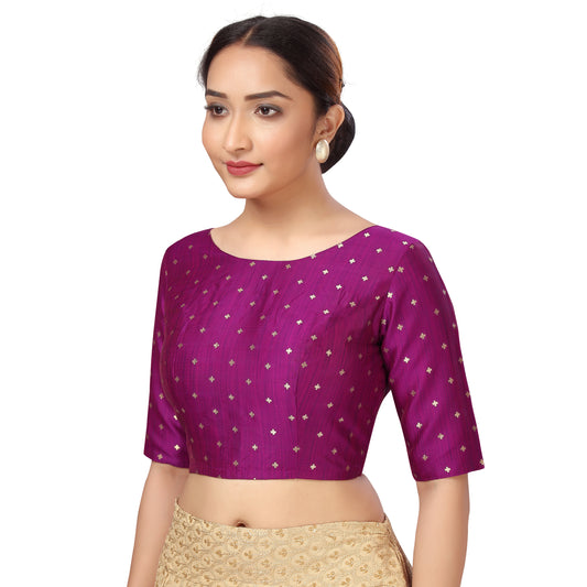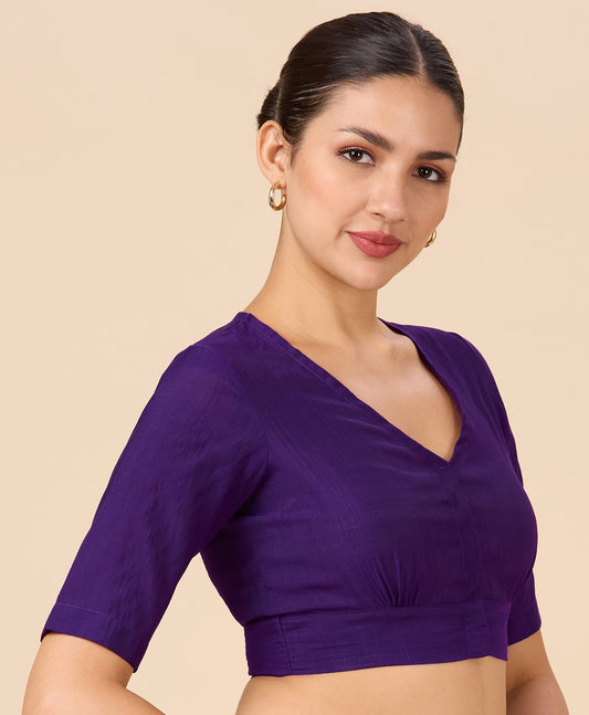 Studio Shringaar Women's Purple Viscose Smart V Neck Readymade Saree Blouse (Design 2880)