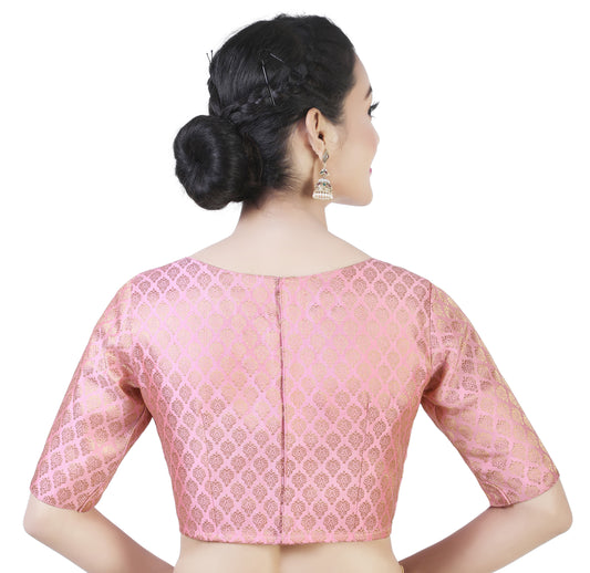 Studio Shringaar Women's Pink Cotton Ikat Stretchable (Smocked) Readymade Saree Blouse(Design 2860)