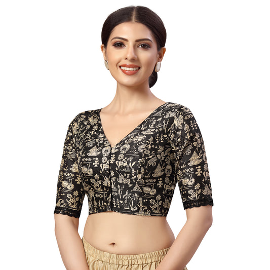 Women's Black Polyester Blouse with Warli Art (Design 2466)