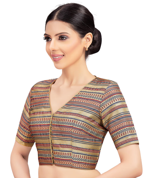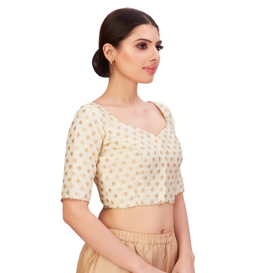 Studio Shringaar Women's Cotton Block Printed Elbow Length Sleeves Saree Blouse