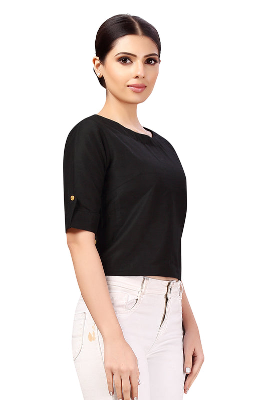 Studio Shringaar Women's Black Viscose Smart V Neck Readymade Saree Blouse (Design 2880)