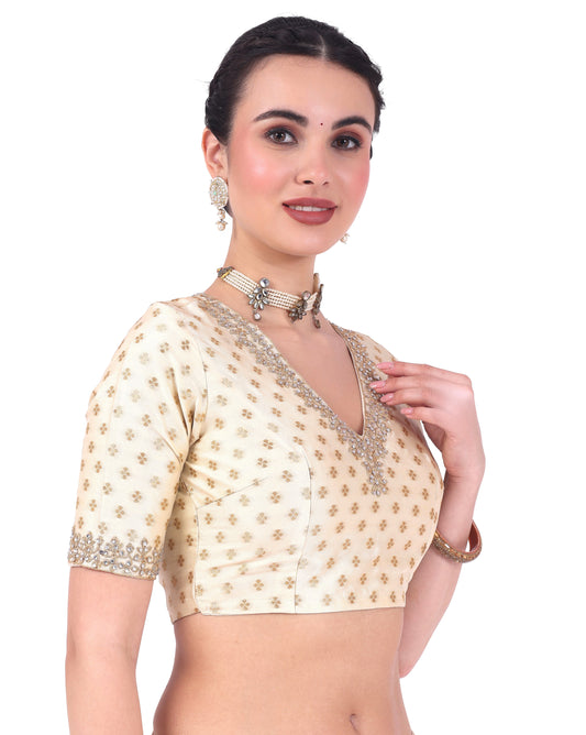 Women's Cream Benaras Brocade Blouse (Design 2666)