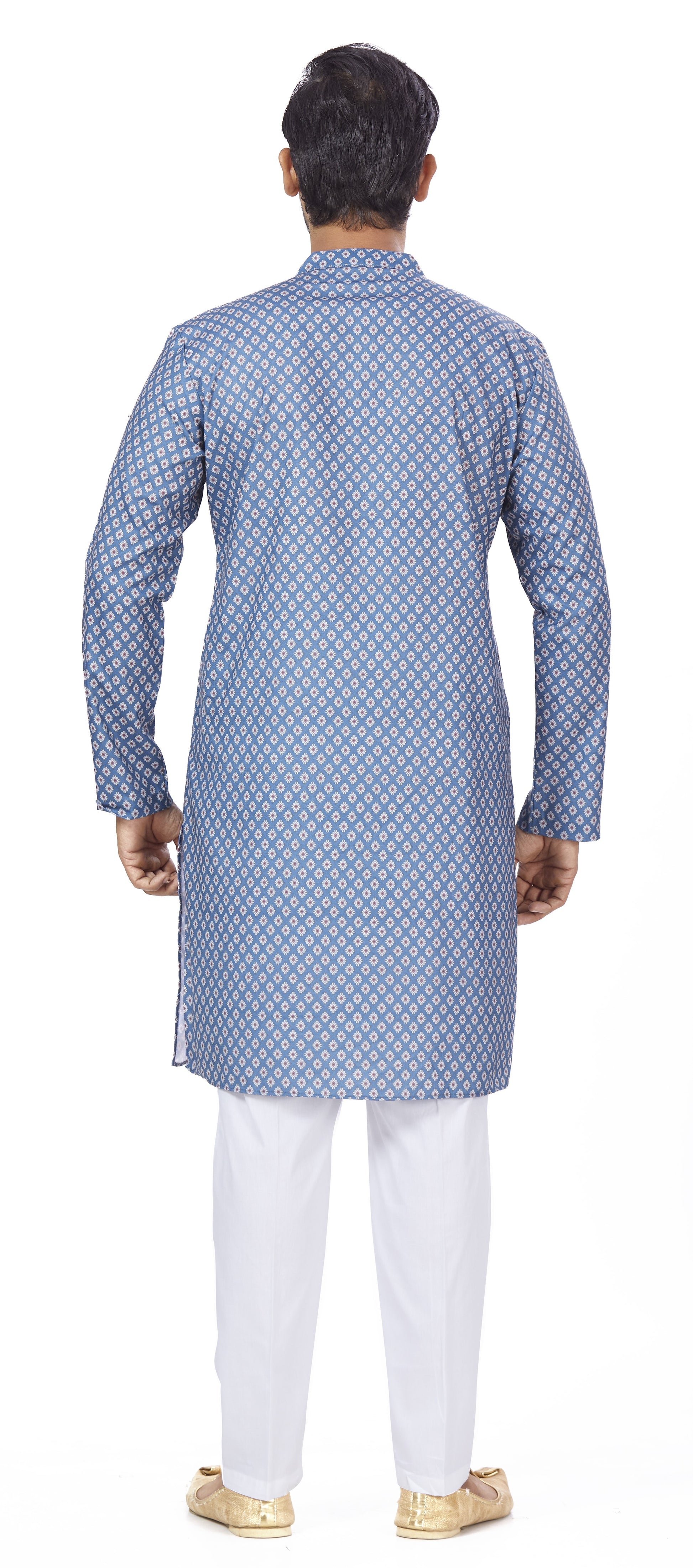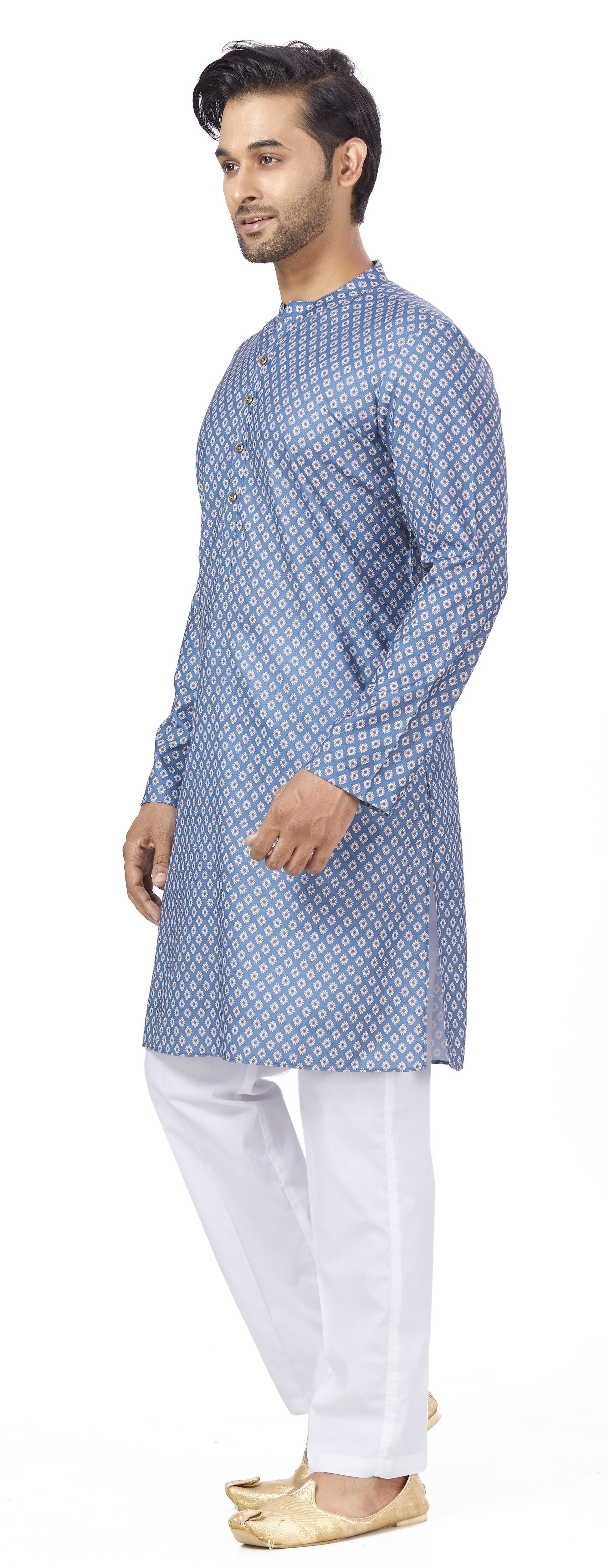 Men's Blue Linen Cotton Blended Relaxed Fit Knee Length Kurta (Design 105)