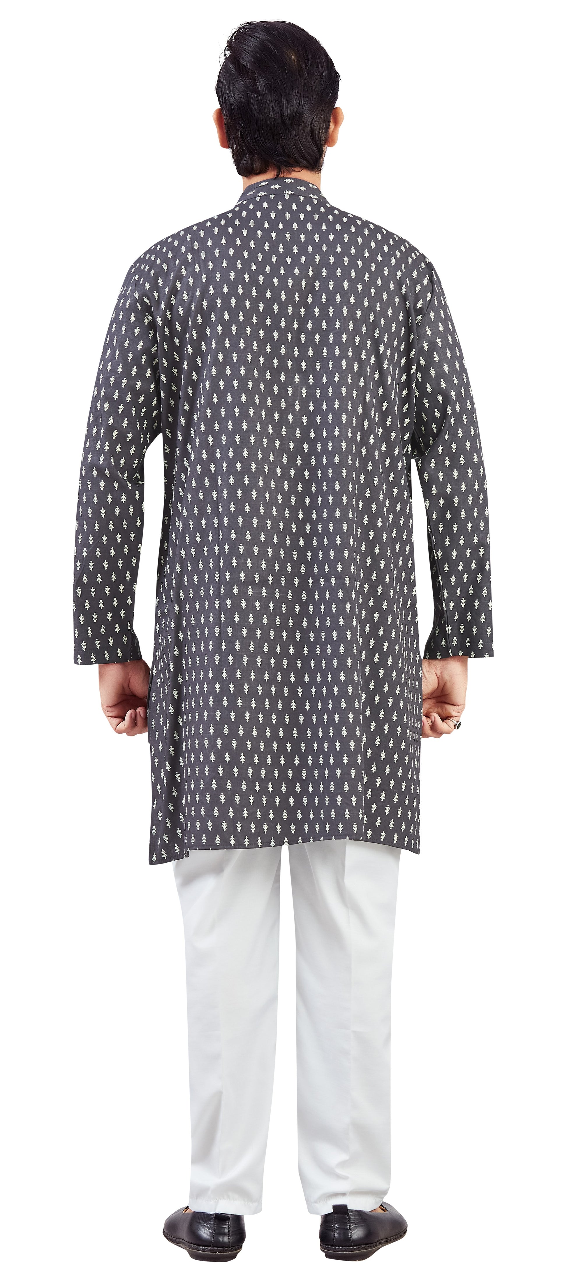 Men's Dark Grey Coloured Cotton Printed Knee Length Relax Fit Kurta (Design 213)