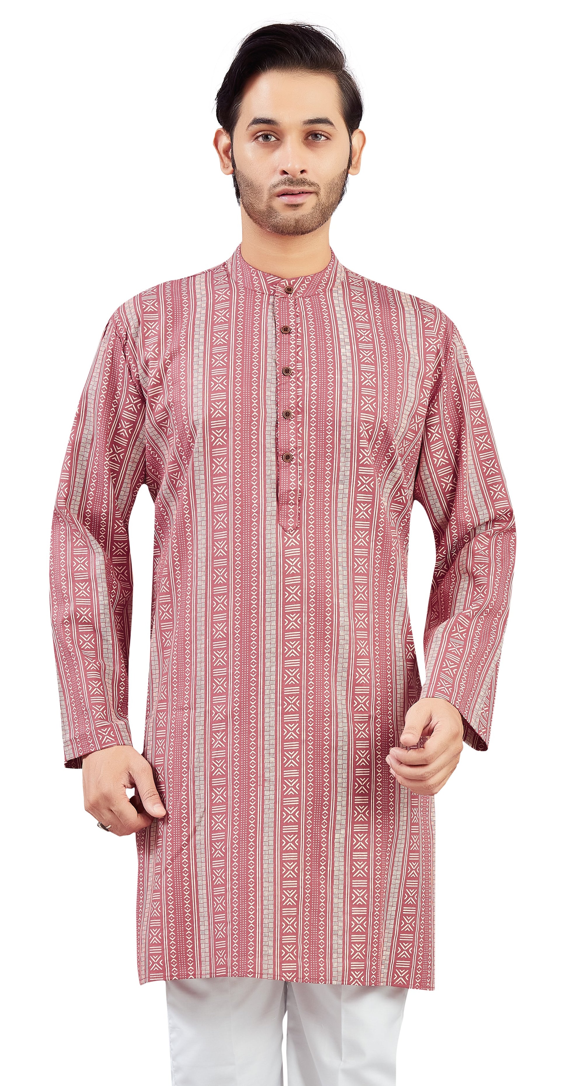 Men's Dusty Pink Cotton Printed Knee Length Relax Fit Kurta (Design 202)