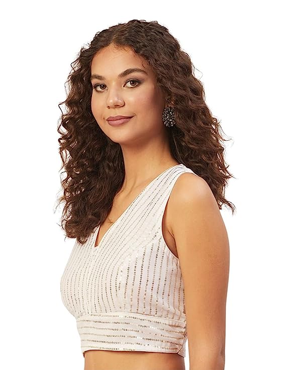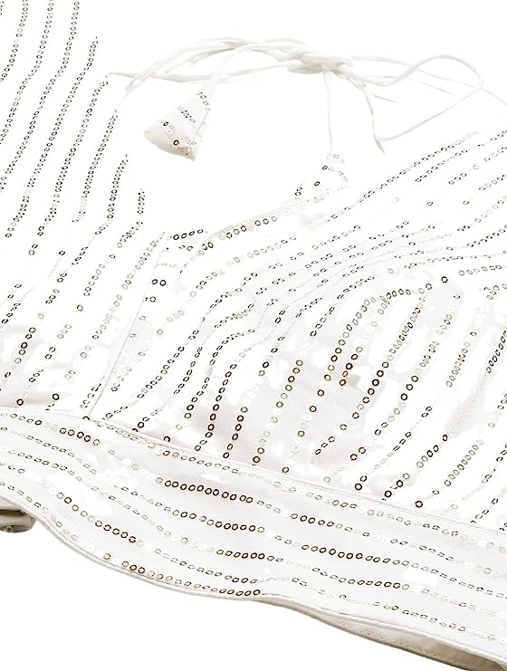 Women's Sequin Embroidery Sleeveless Saree Blouse (2472 - White)
