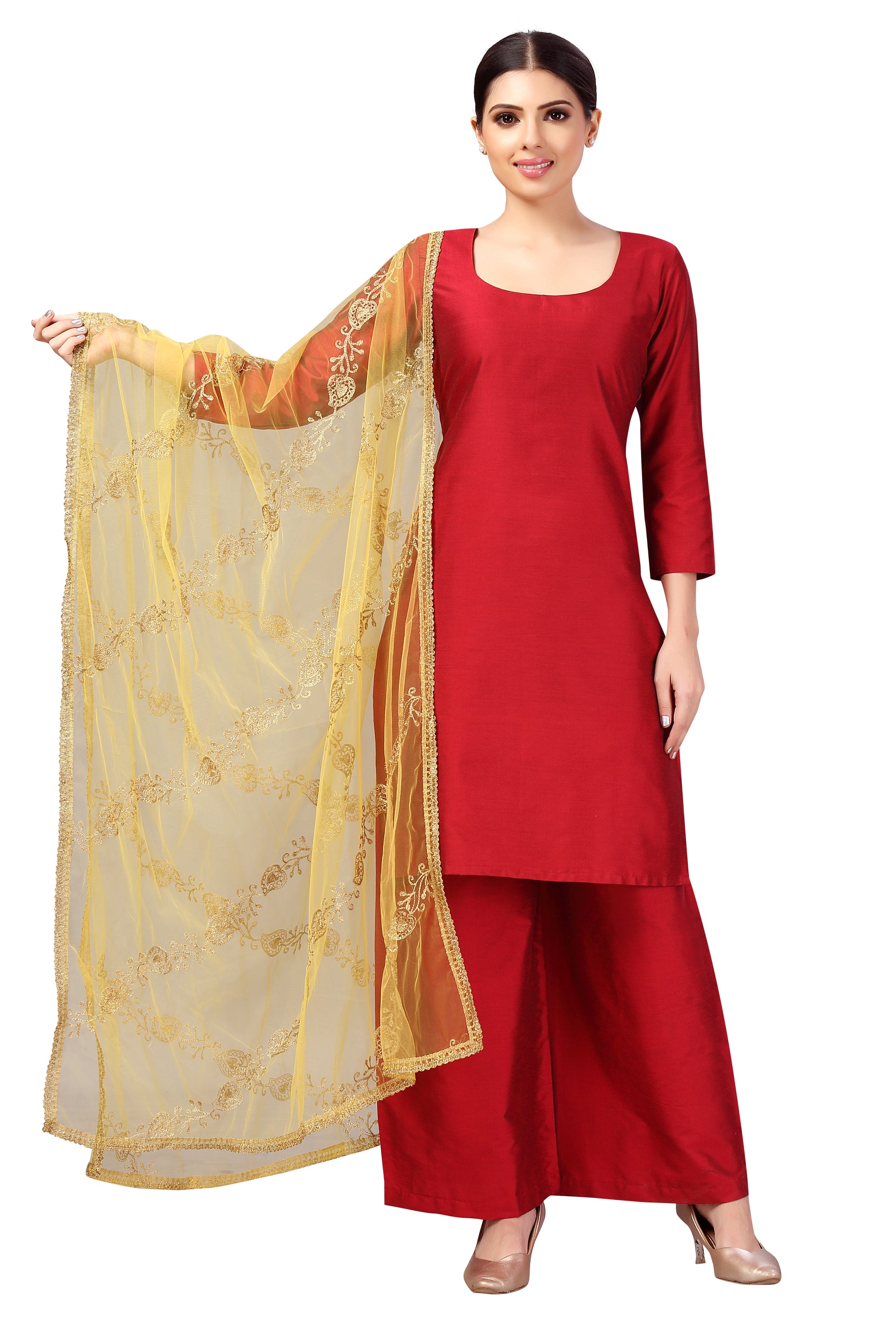 Women's Net Embroidered Full Size Dupatta (42" X 2.45 Meters) (2619 - Yellow)