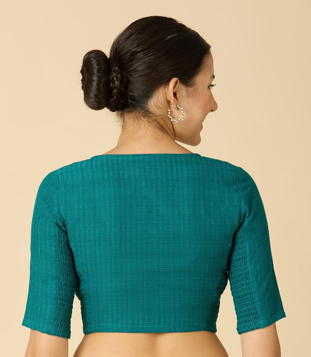 Studio Shringaar Women's Firozi Cotton Madras Checks Saree Blouse with Stretchable Sides (Design 2903)