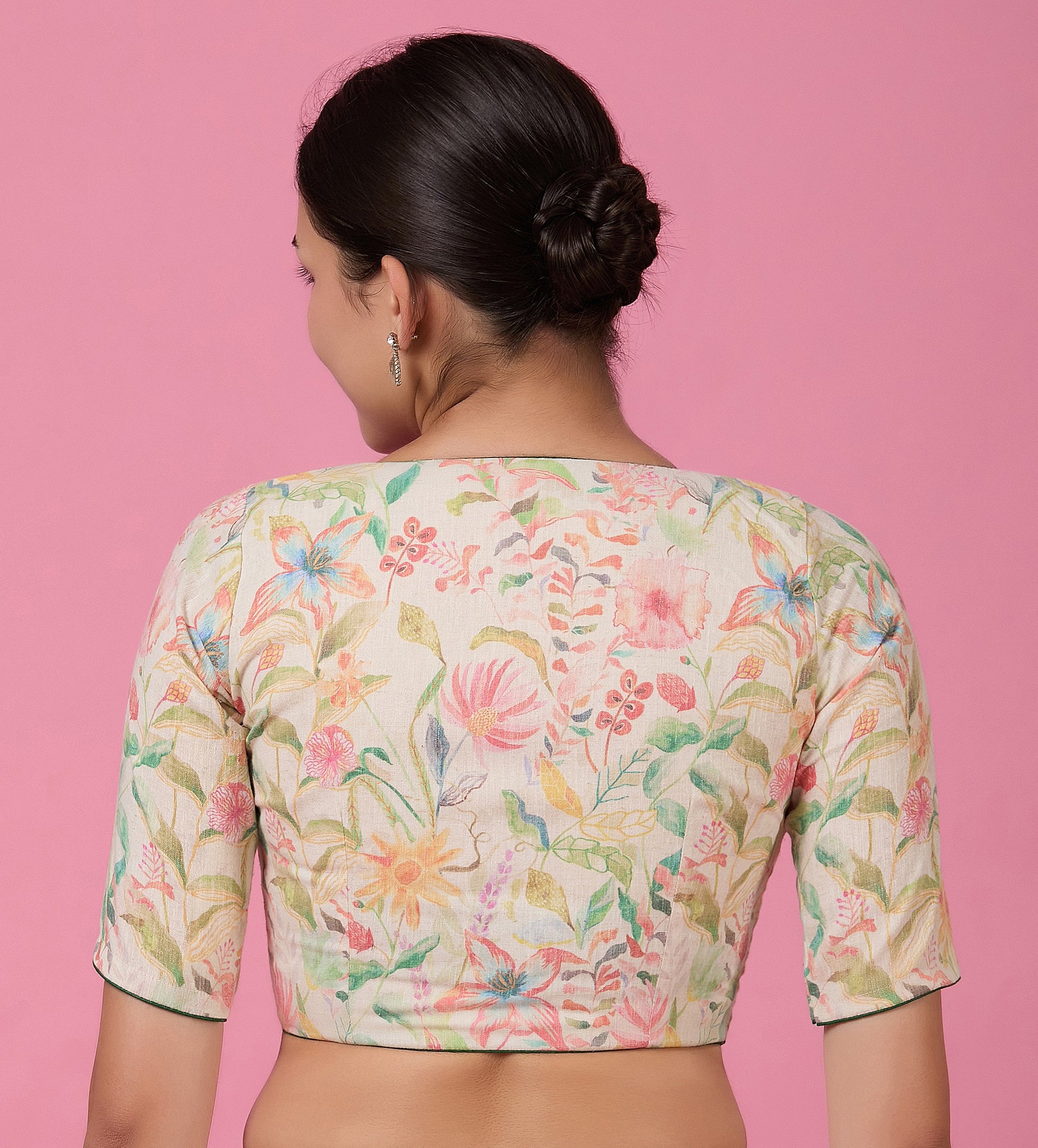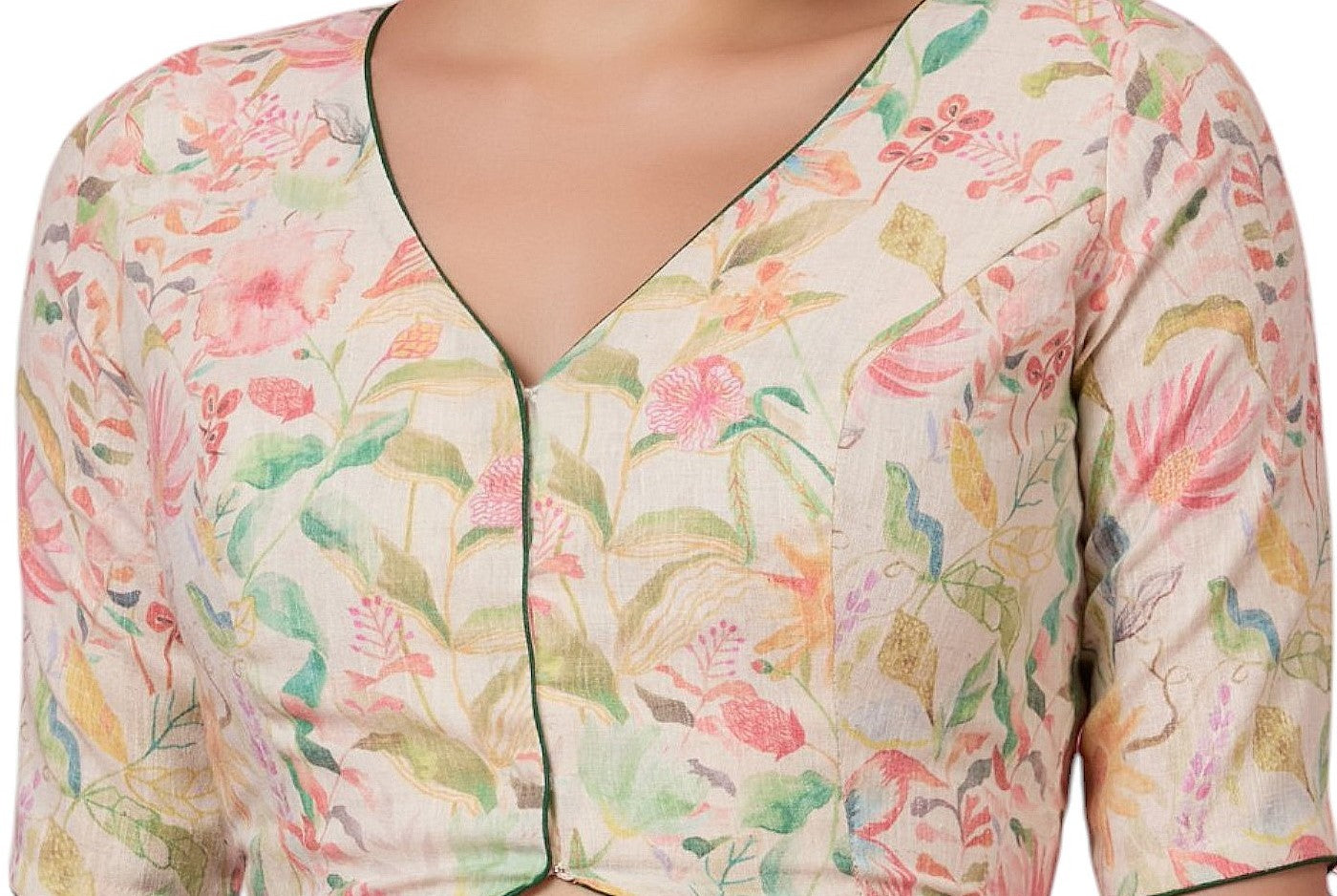 Studio Shringaar Women's Multicoloured Linen Printed Saree Blouse (Design 2875)
