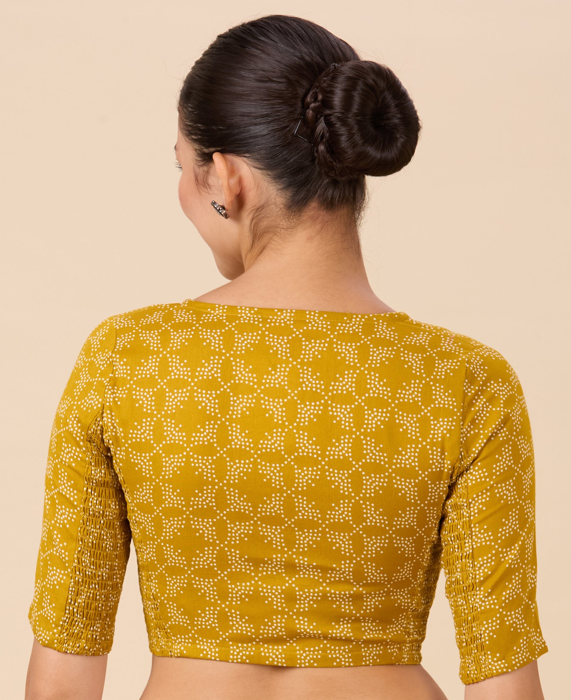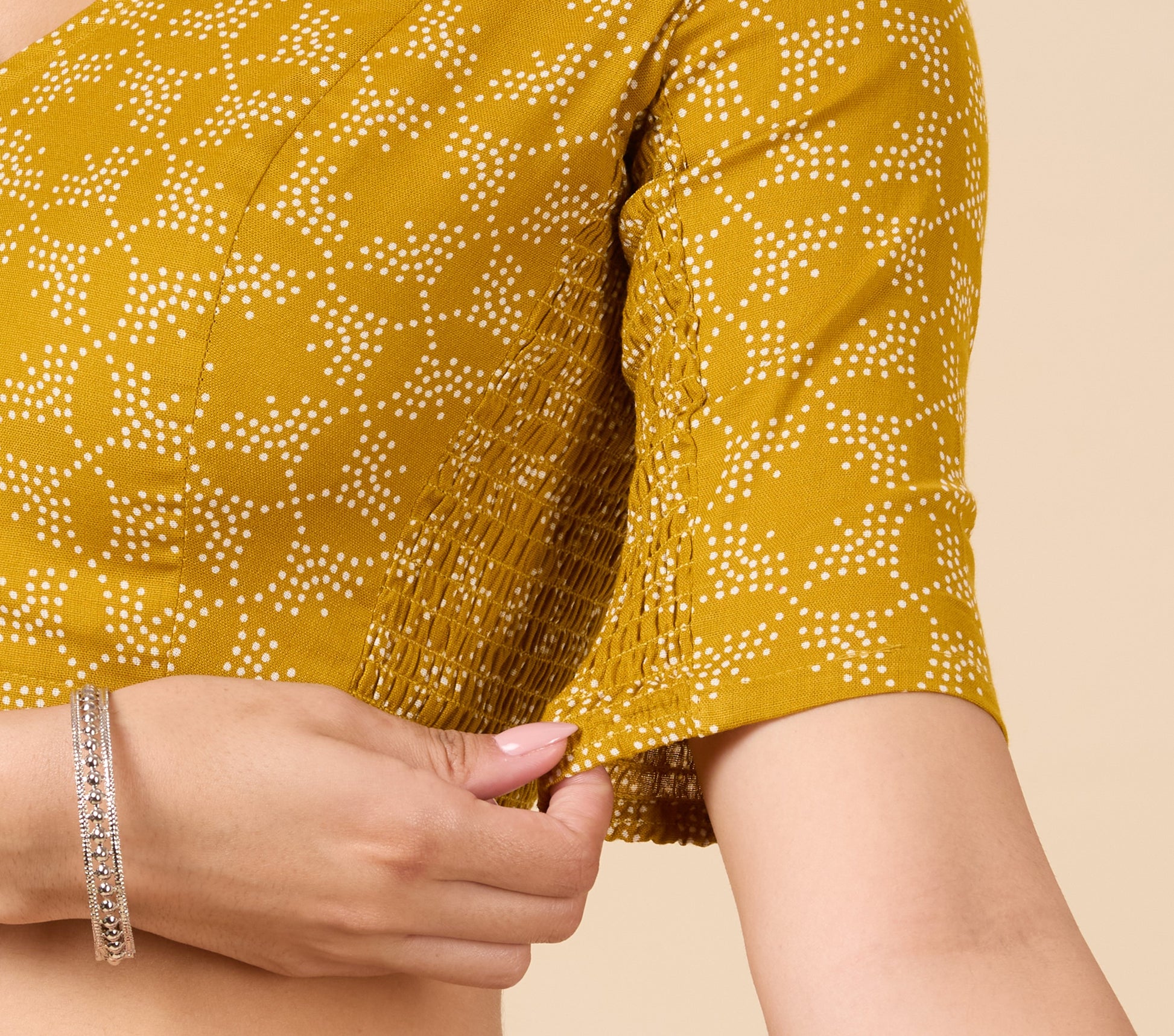 Studio Shringaar Women's Mustard Cotton Printed Stretchable (Smocked) Readymade Saree Blouse(Design 2883)