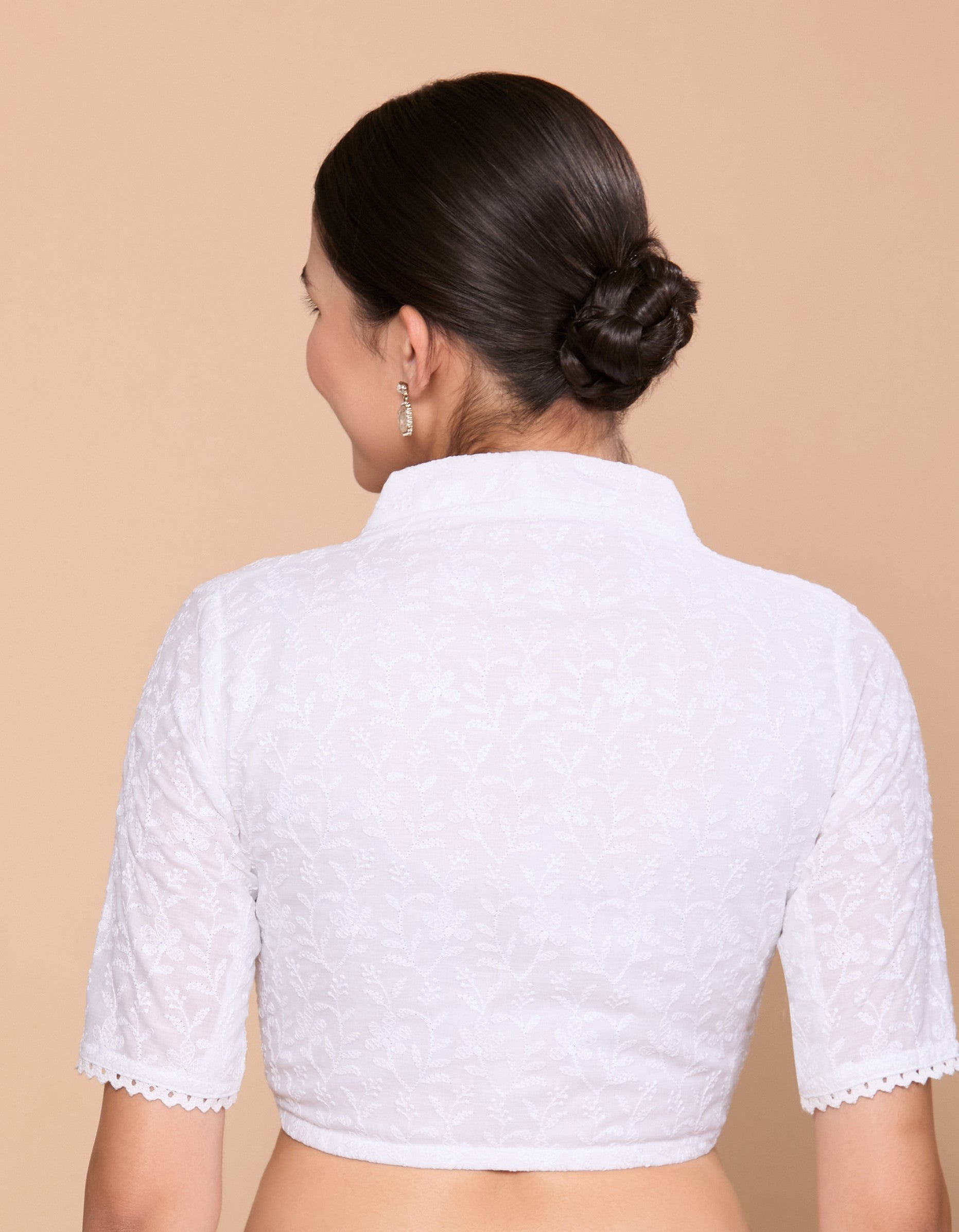 Studio Shringaar Women's White Lucknow Chikankari Saree Blouse with Crochet Edging (Design 2872)