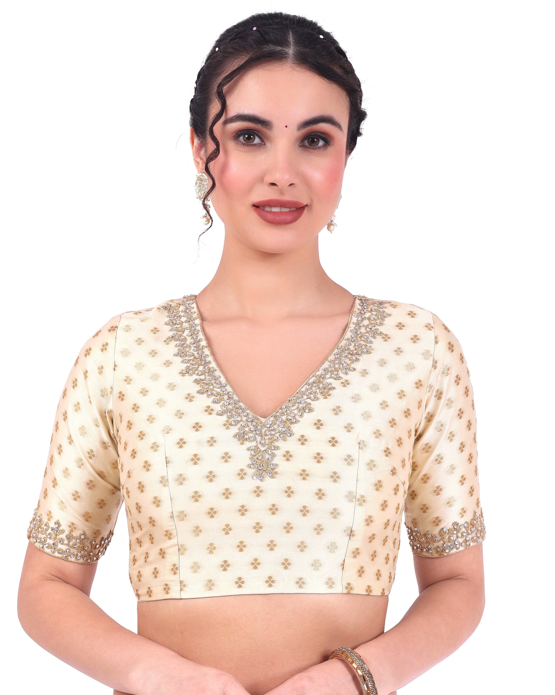 Women's Cream Benaras Brocade Blouse (Design 2666)