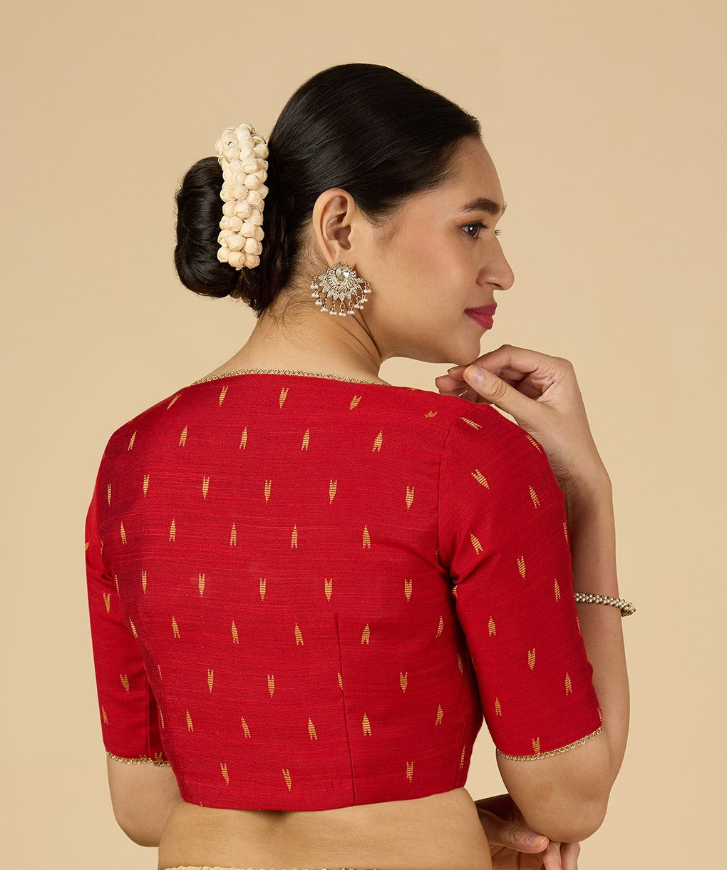 Women's Red Handloom Cotton Silk Readymade Saree Blouse (Design 2958)